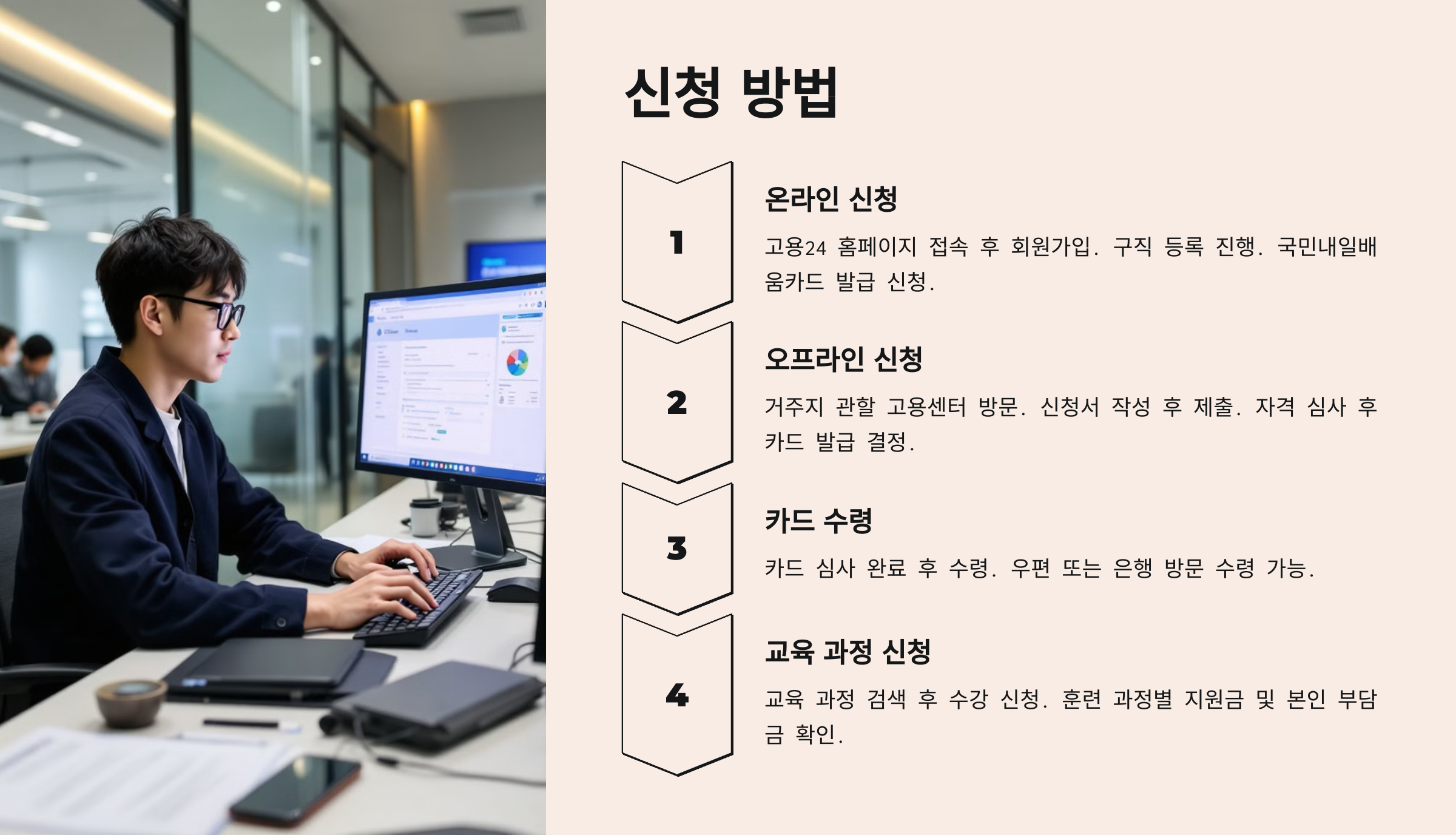 ✔ 온라인 신청이 가장 간편하며, 고용센터 방문 신청도 가능