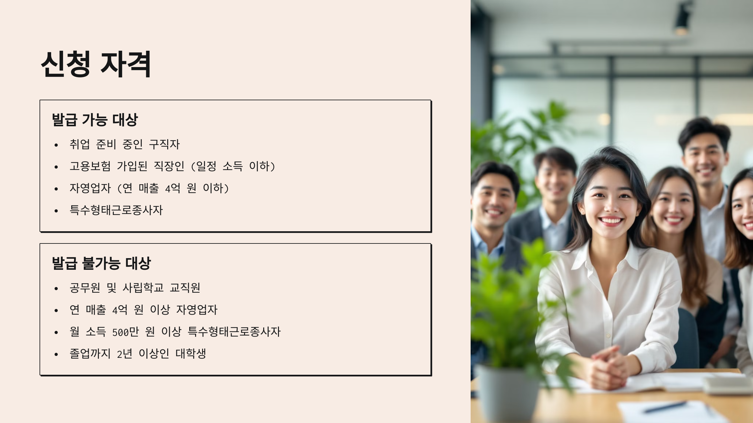 ✔ 고용보험 가입된 직장인 (일정 소득 이하)