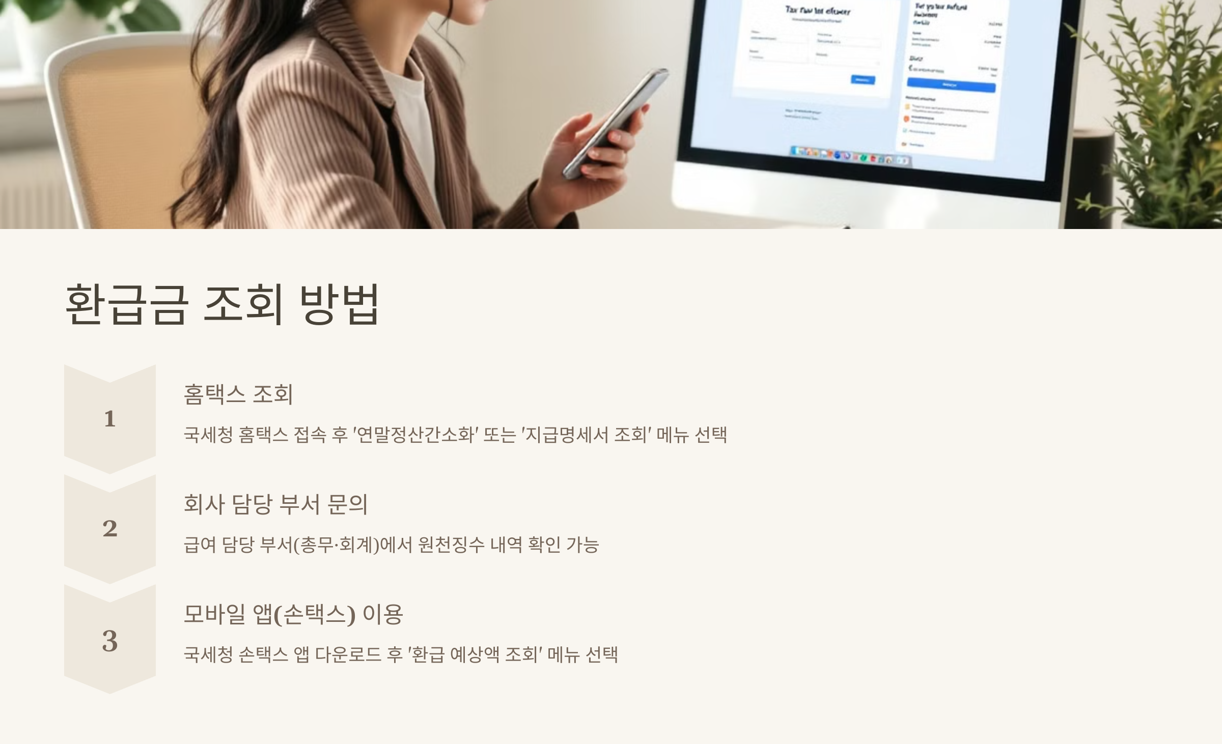 📌 홈택스·손택스 또는 회사 담당 부서를 통해 환급금 예상 조회 가능