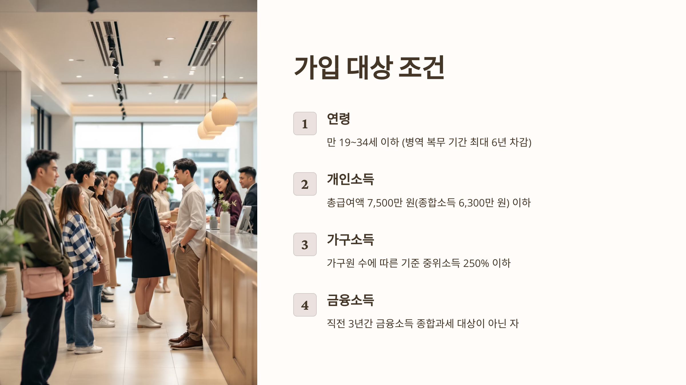 ✔ 연령: 만 19~34세 이하 (병역 복무 기간 최대 6년 차감)