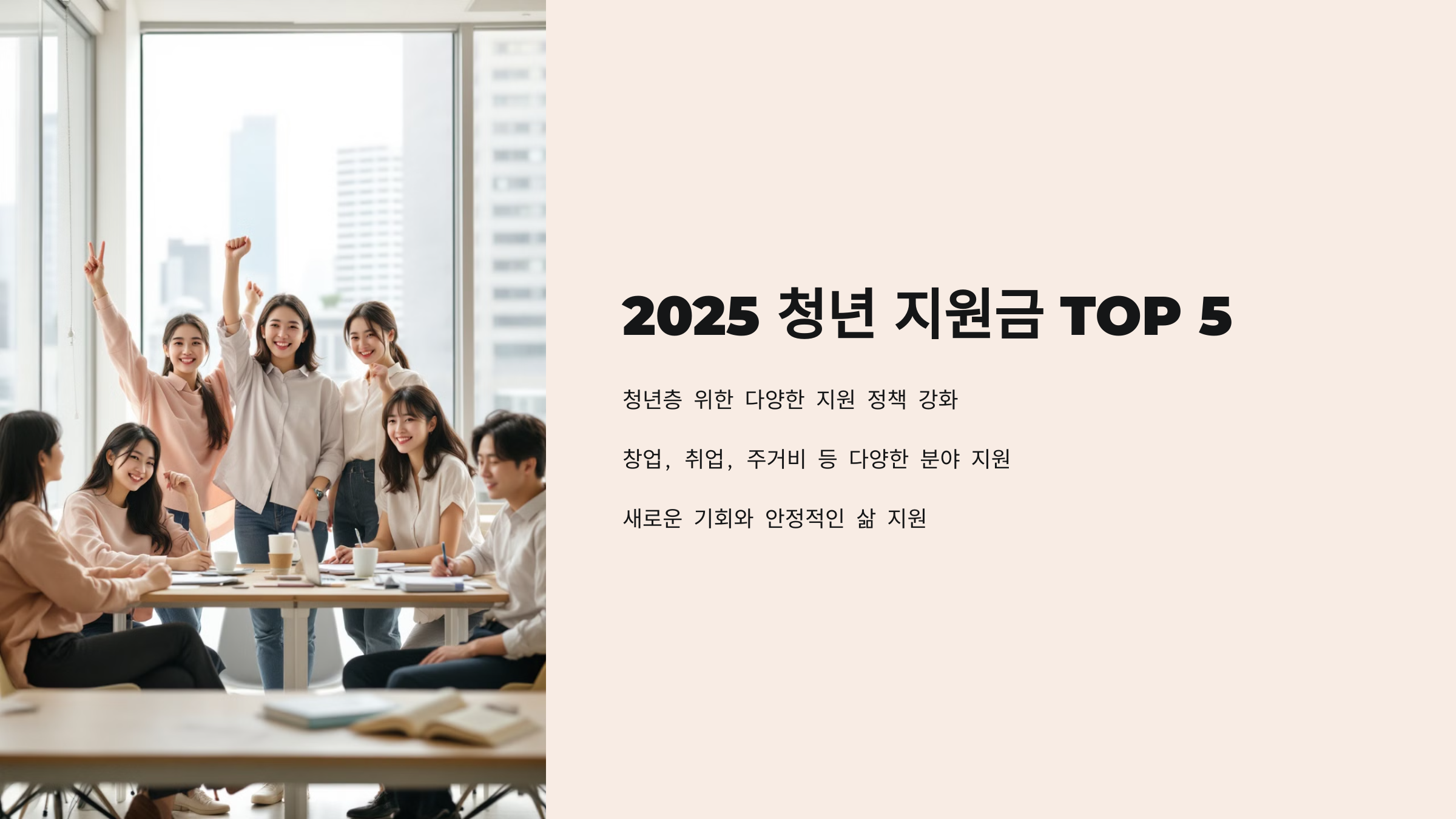 이번 글에서는 2025년 청년 지원금 TOP 5를 소개하고, 신청 방법혜택을 자세히 알려드립니다.