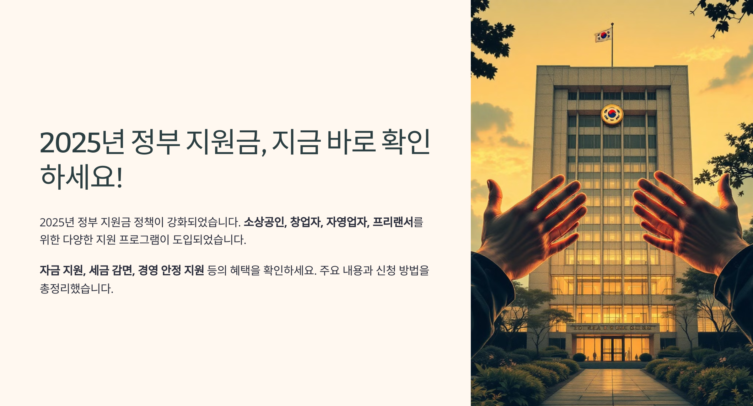 2025년 정부 지원금 정책이 한층 강화되면서 소상공인, 창업자, 자영업자, 프리랜서를 위한