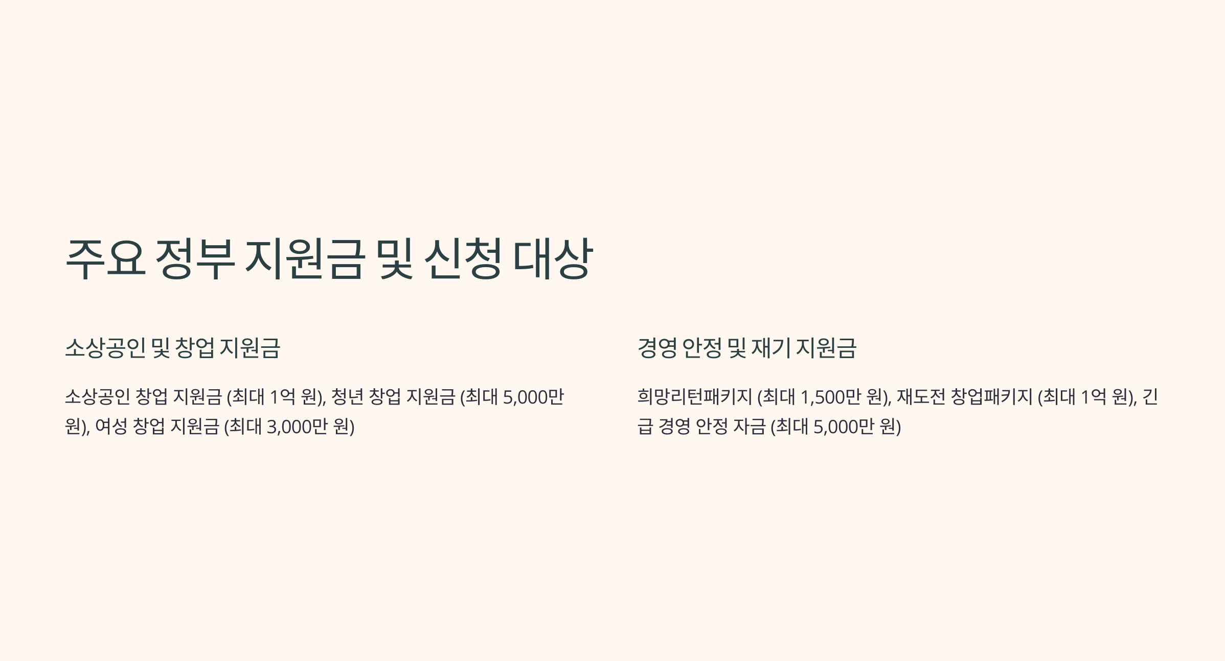 주요 정부 지원금 및 신청 대상