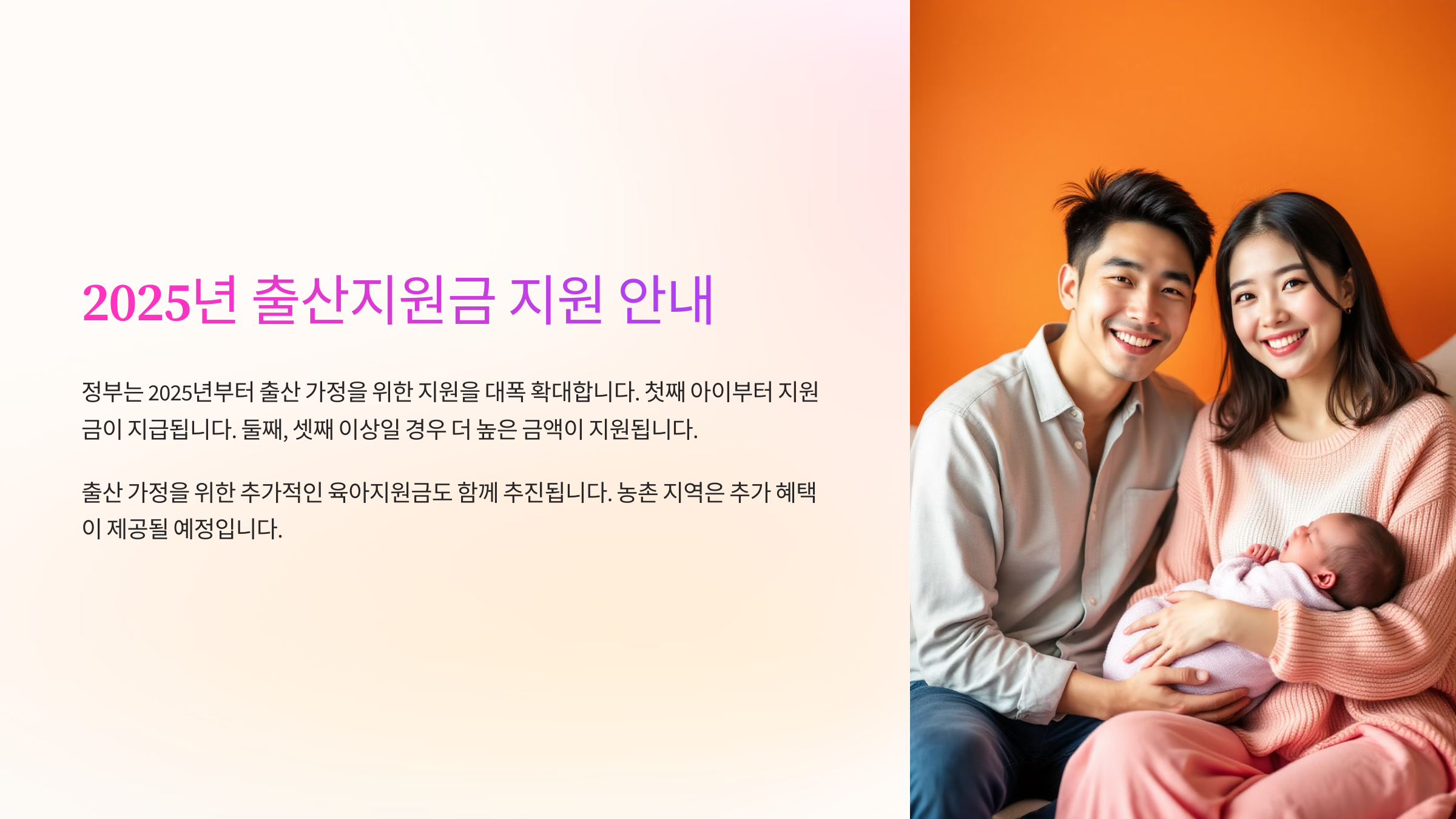 정부는 2025년부터 출산 가정을 위한 지원을 대폭 확대할 계획입니다.