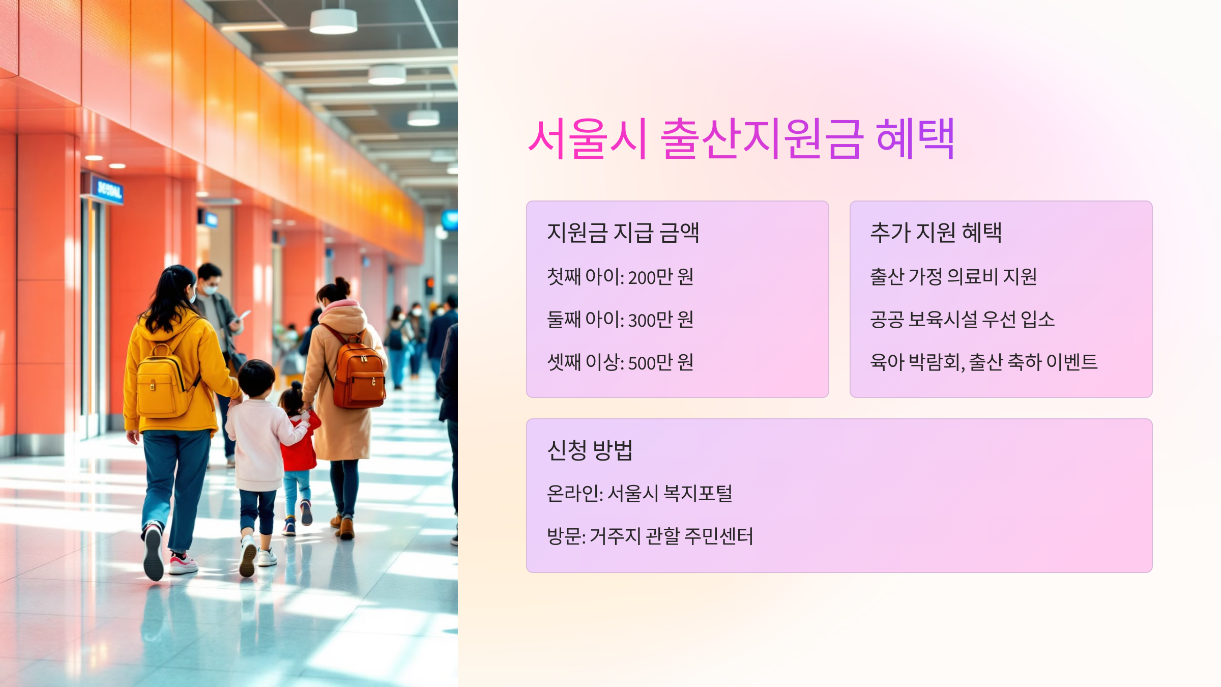 서울시는 출산 가정을 위한 다양한 지원 정책을 운영 중입니다.