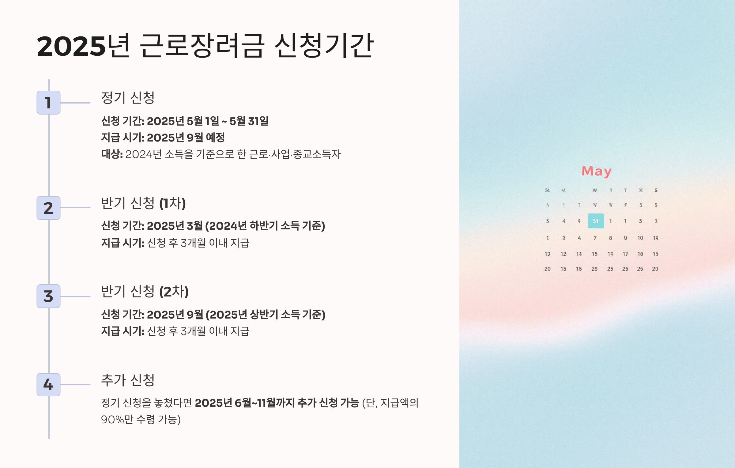 ✔ 1차 신청: 2025년 3월 (2024년 하반기 소득 기준)