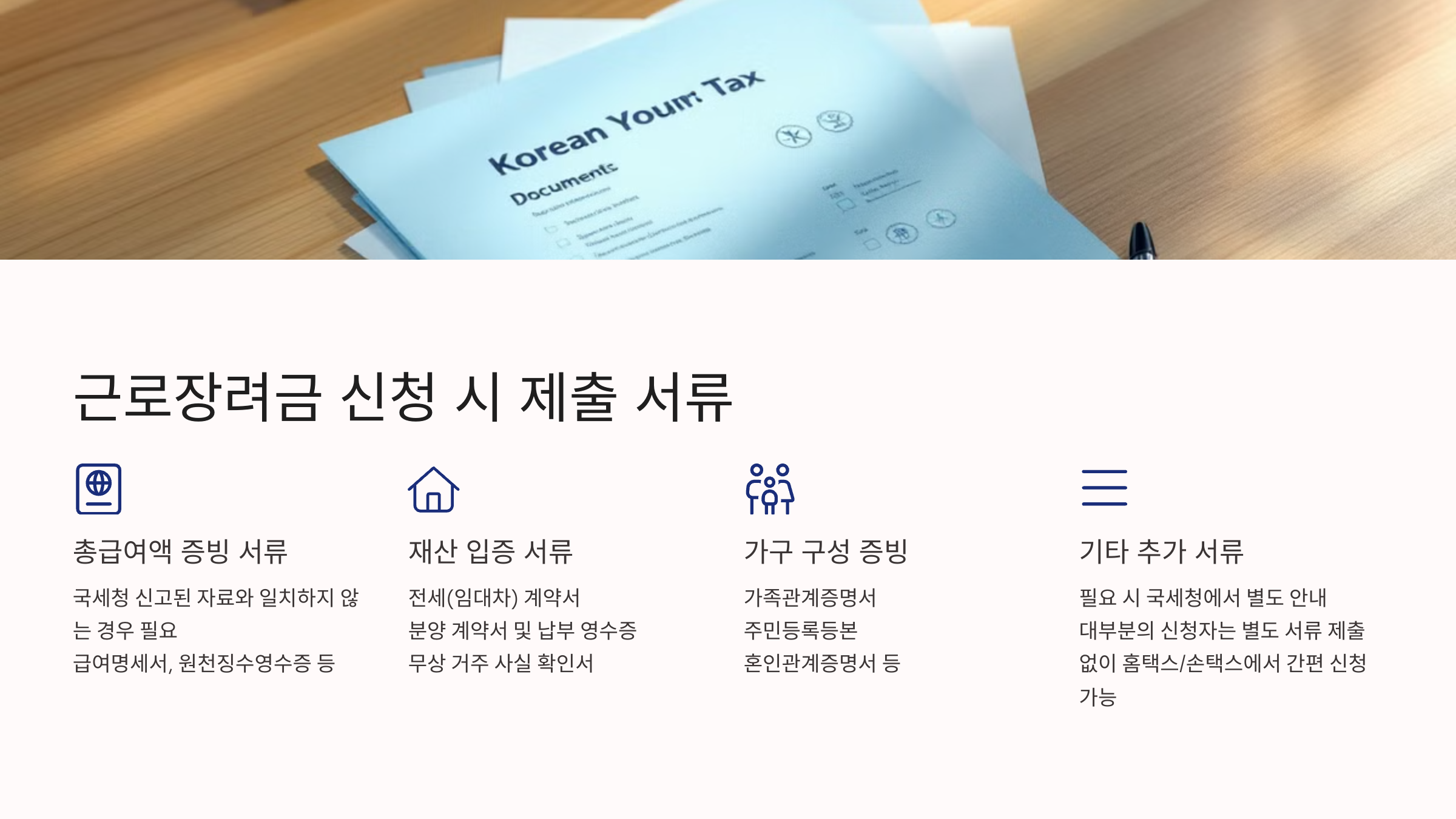 ✔ 대부분의 신청자는 별도 서류 제출 없이 홈택스/손택스에서 간편 신청 가능
