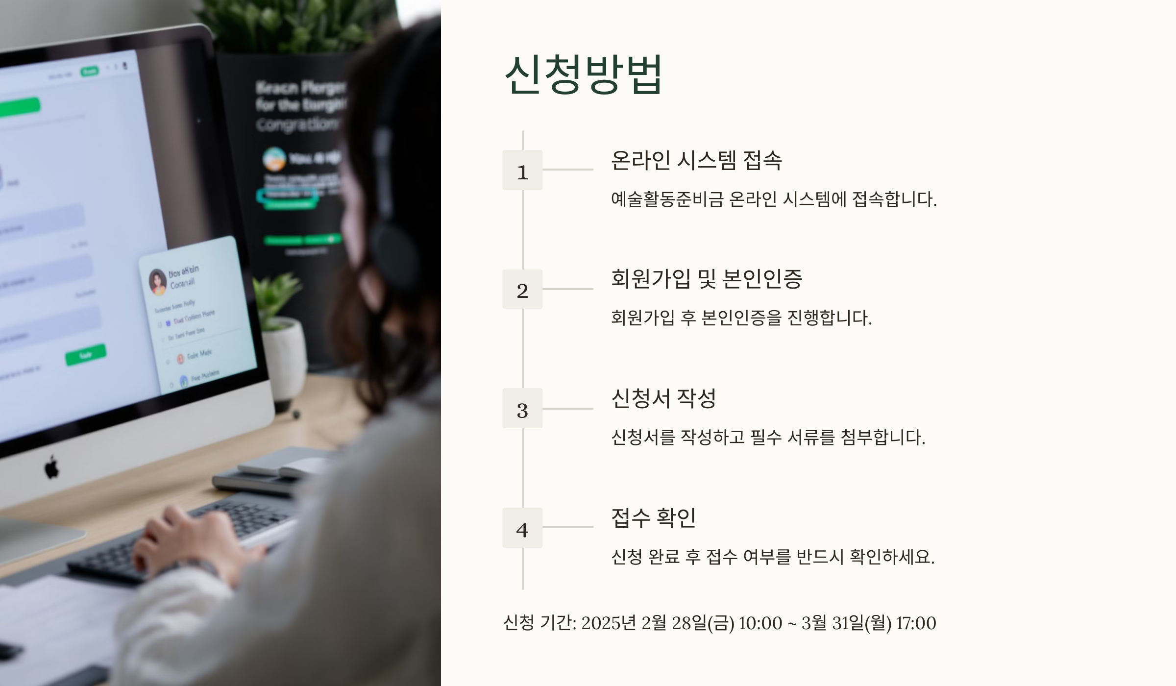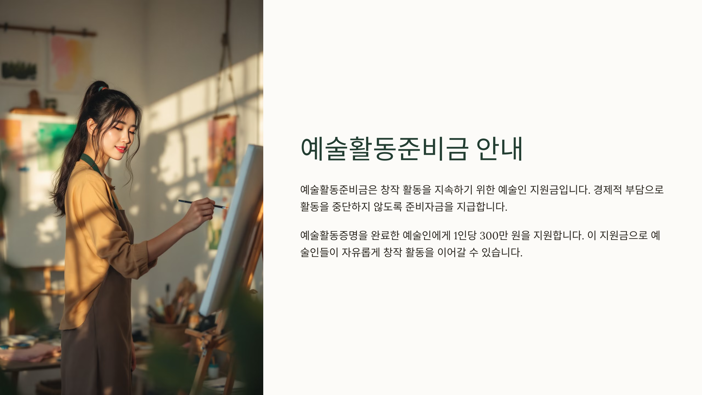 📌 경제적 어려움 속에서도 창작 활동을 이어갈 수 있도록 예술인을 위한 필수 지원금!
